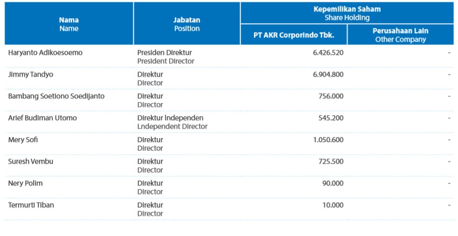 - Never been a member of a Board of Directors and / or members of a Board of Commissioners who were found guilty for causing the company to go bankrupt;