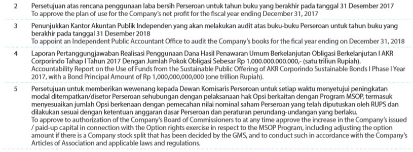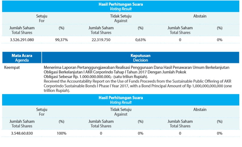 AKR’s Board of Directors complies with Bapepam Regulation Number IX.E.I concerning Conflict of Interest Transactions. The principles adopted to prevent any occurrence of conflicts of interest and the continued implications that may arise include the following: