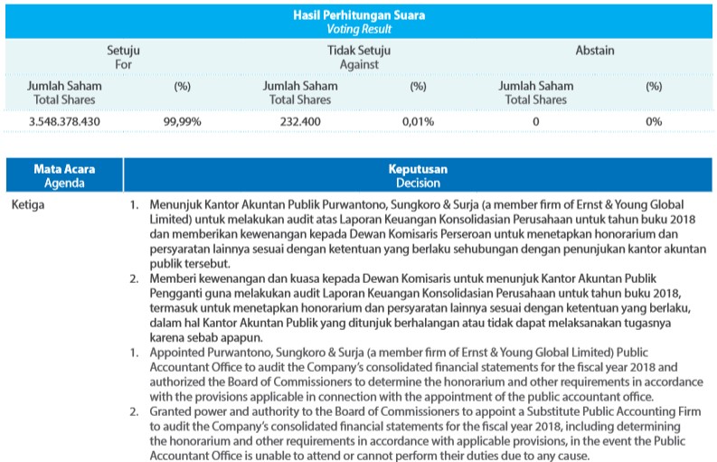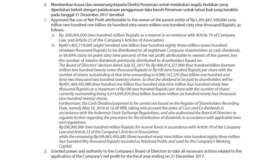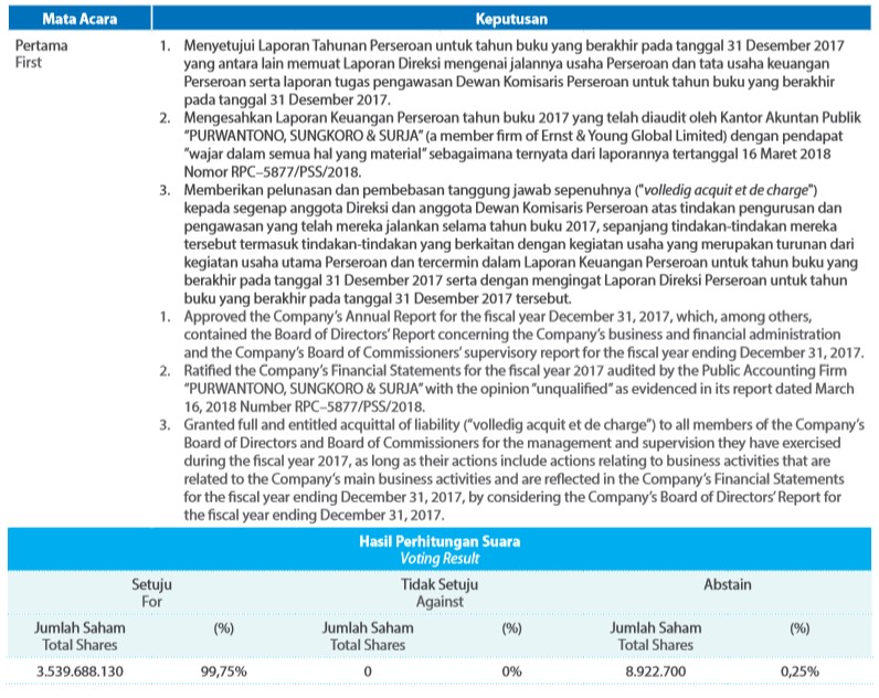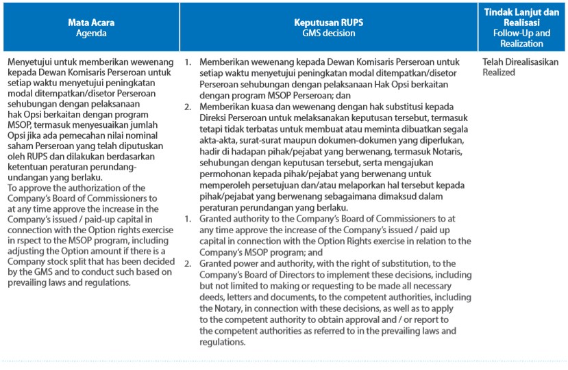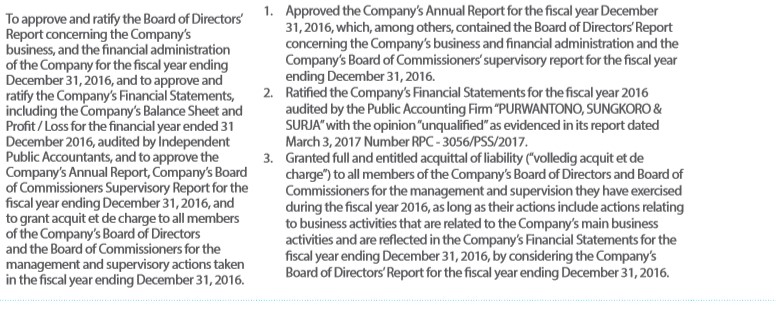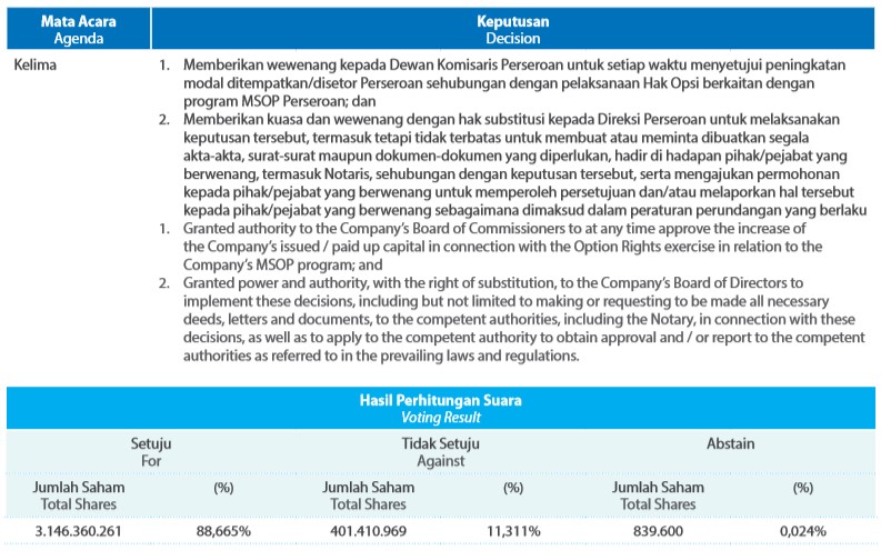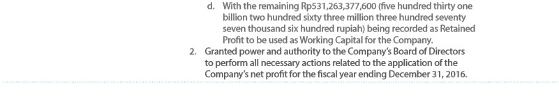 7. The President Director is entitled and authorized to act for and on behalf of the Board of Directors and represent the Company.