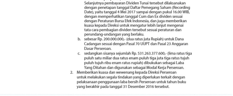 - Never caused a company with permits, approval, or registration from Otoritas Jasa Keuangan to not fulfill the obligation to submit annual reports and / or financial reports to Otoritas Jasa Keuangan.