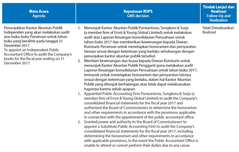 - Never responsible as a member of a Board of Directors and / or member of a Board of Commissioners that was not accepted by an AGMS or never given responsibility as a member of a Board of Directors and / or member of a Board of Commissioners by an AGMS; and